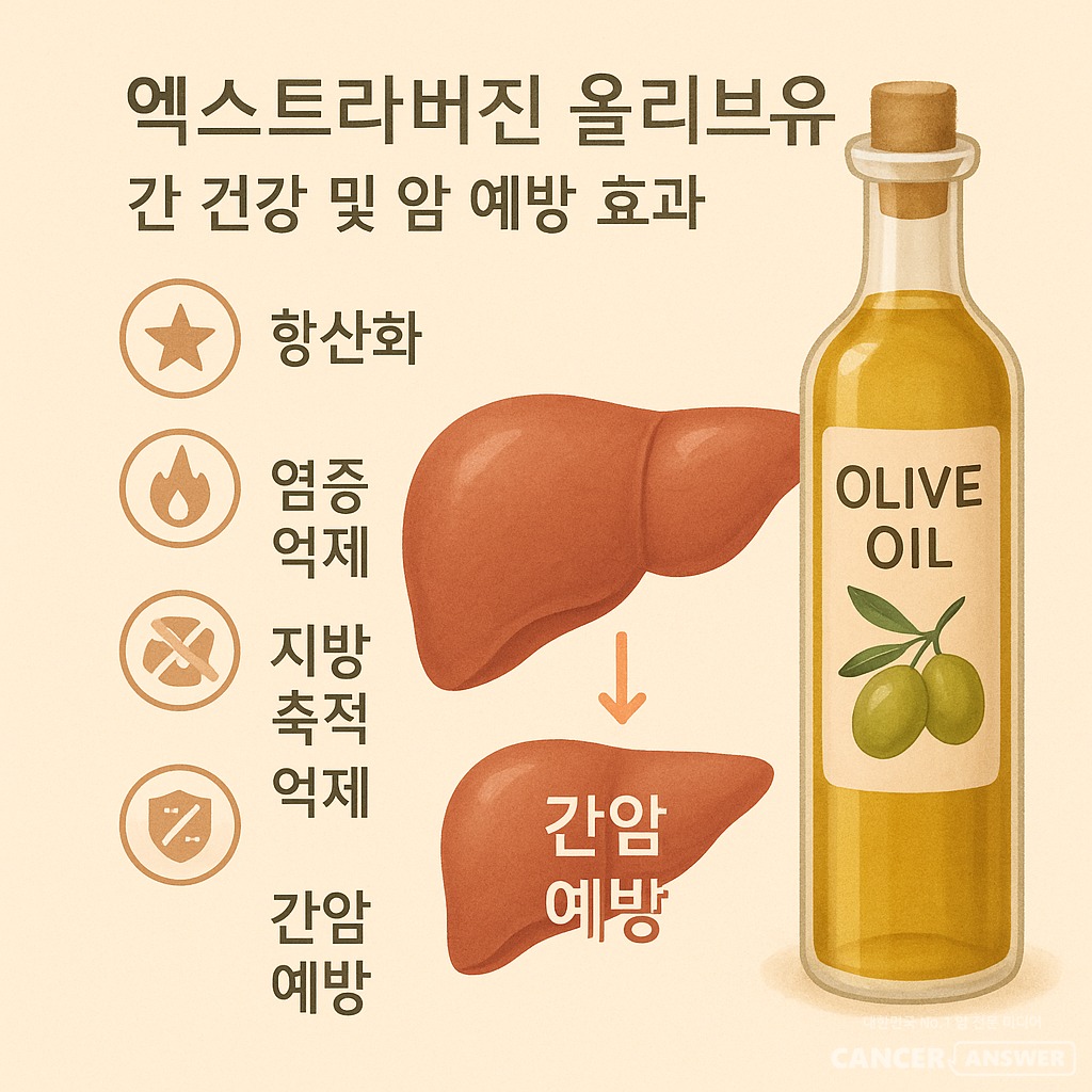 올리브오일에 함유된 올레오칸탈과 티로솔 같은 항산화 성분이 암세포의 성장을 억제하고 암세포를 파괴합니다. 연구에서 올레오칸탈을 암세포가 있는 시험관에 넣은 결과 약 30분에서 1시간 사이 암세포가 급속히 소멸했으며, 정상 세포는 공격하지 않고 유해한 암세포만 골라 파괴했습니다. 올리브오일 섭취가 유방암 재발 위험을 낮추고 위장관 암 사망률을 60% 감소시키는 것으로 보고되었습니다.